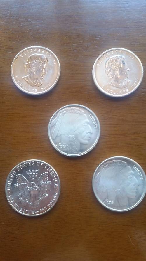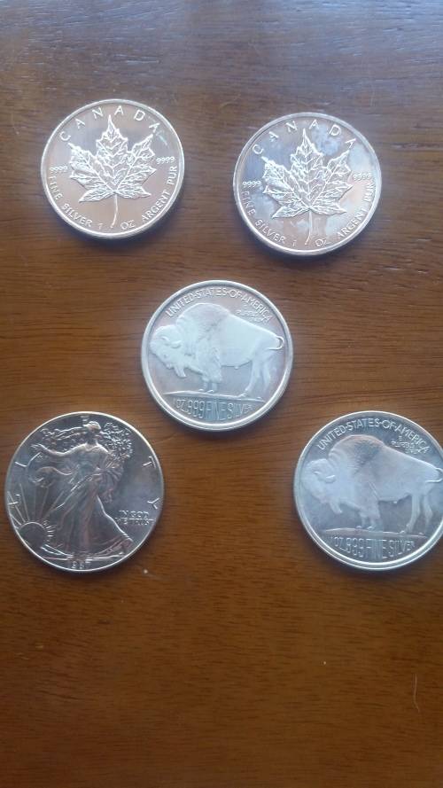 5 x 1 Oz Silver Coins - American Eagle , Canadian Maple and Buffalo !! ONE BID TAKES ALL
