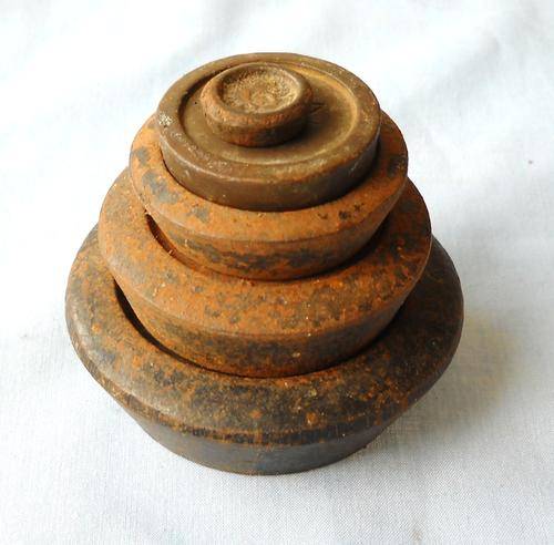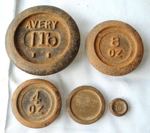 5 X ANTIQUE-SET OF 5 EARLY NESTING SCALE WEIGHTS-AVERY-VERY GOOD CONDITION
