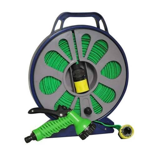 This 50' (15 meter) collapsible hose drains as your roll it onto its reel.