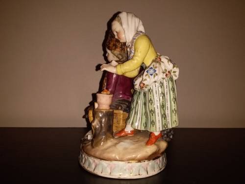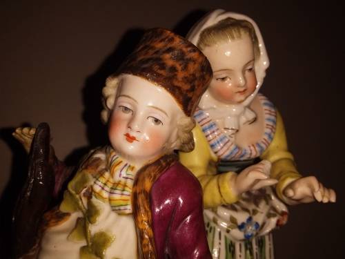 Same figurine on other auctions: https://www.lotsearch.de/lot/a-meissen-figural-group-40536556