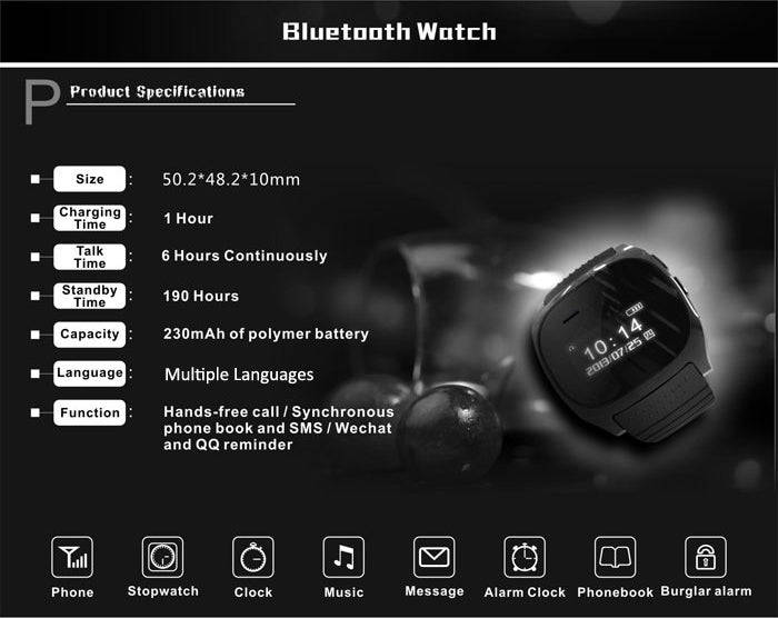 RWATCH M18 Bluetooth watch, a nice smart companion to Android OS devices; It has many differents functions and works nicely: Bluetooth, phonebook, remote notification, Bluetooth music, information, call logs, toolbox(language, time, date, ringtone, stopwatch, alarm, power saving mode)