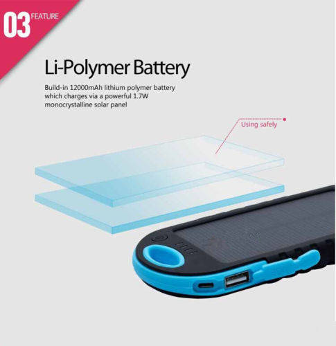5000mAh Portable Waterproof Solar Charger Dual USB External Battery Power Bank