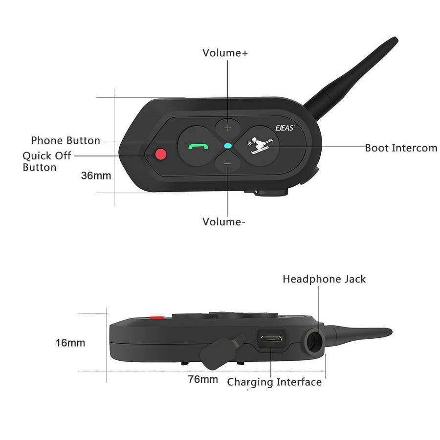 Description: 1. The EJEAS SKI10is a bluetoothIntercom with long-range bluetooth, intercom designed specifically for snow sports activities.