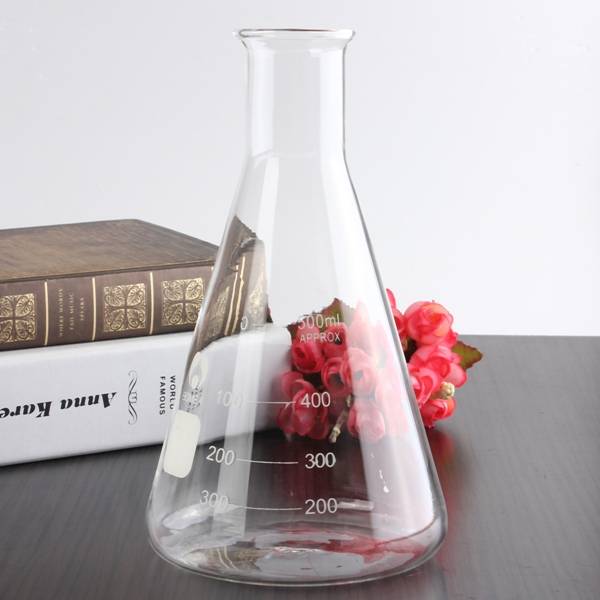 Feature: 500ml graduated glass erlenmeyer flask Made from borosilicate with low thermal expansion rate,high temperature tolerance, high strength and hardness High chemical properties,base resistance and acid resistance Narrow mouth design with 29/40 ground joints Large marked metric scale,easy to read Fit for lab chemistry experiment