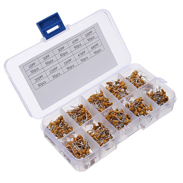 500Pcs 10 Values 10PF-680PF Multilayer Monolithic Ceramic Capacitor Assorted Ki