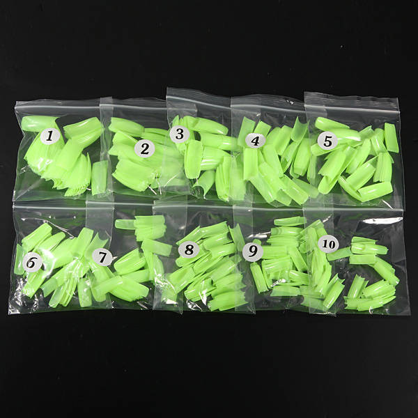 Package weight: 0.06 kg Features: 1. 10 packets of False nail in 10 sizes (each size with 50 tips). 2. Suitable for using with gel, acrylic or fibreglass applicators. 3. French style nail tips, half well, cover the free edge of the natural nail. Description: Item Type: False Nail Color: Green, Orange, Blue, Purple, Hot pink, Pink,Red Quantity: 500pcs/pack Weight: App 65g Package Included: 1 X 500pcs Nail Art Tips