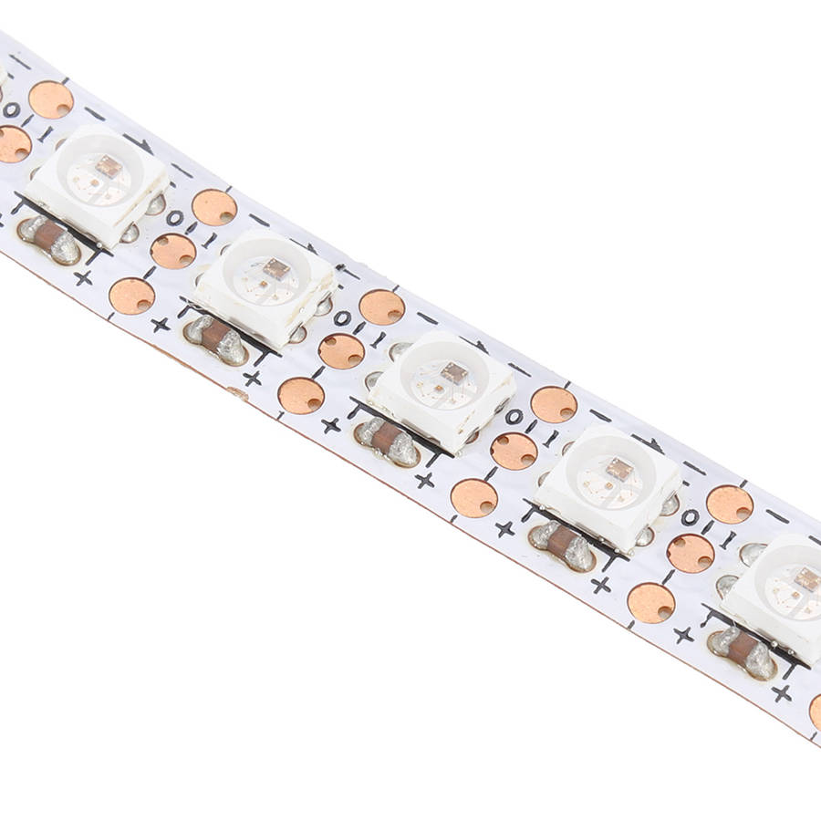 Description: RGB LED is a extendable strip light with RGB LED lined on. Just if you havenat heard about RGB LED yet, RGB LED features digitally addressable LEDs,which means each led can display RGB color and brightness individually. It is very easy to program by Single-BUS with simple protocol. Another feature is the extension and flexiblulity.You can even connect many of them up together to create a massive long LED display. It`s important to note that, the brightness and the quantity of LEDs matters the most to the power consuming, if you have a bunch of them connectted up, you will need extra power supply. Notice: please pay attention to the direction of the input port and output port Features: Alternative length: 50cm Sofeware Development Platform: , UIFlow(Blockly,Python) extendable Product Size: 50cm Product weight: 12g Package Included: 1 x RGB LED Unit 1 x Grove Cable