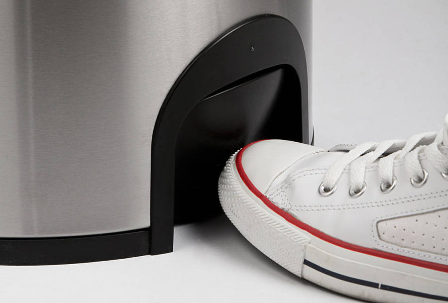 Lightly tap with your foot the panel area to open the lid. You can tap the panel again to activate the panel to close. The lid will remain closed until you tap on the panel again to open.