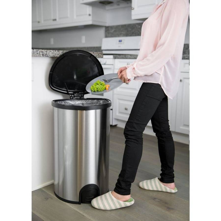 The Motion Sensor Slim 50 Litre Trash Can is a hip and stylish way to handle waste without actually touching it. The stainless steel Nine Stars trash can open instantly with a tap to the remote sensor area and will automatically close seconds later. It is ideal for kitchens, living rooms, or restrooms. The touchless trash can accommodate trash can bags, or up to 50 litres of waste. It is designed to have a long battery life and has been tested to run 10,000 openings on one set of batteries.