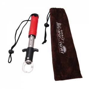Made from corrosion resistant stainless steel and tough ABS plastic, the water resistant Big Fish Lip Grip is a must for saltwater and freshwater anglers for landing any toothy fish. The powerful spring action jaws securely hold the fish for landing and because the grip’s jaws pivot instead of being rigidly affixed to the handle, the fish can twist and wiggle without injury to the fish or the angler. The wrist lanyard adds to the tool’s security. This big fish lip grip has build in scale( can read in LB or kg,and up to 22kg/50lb) and with a measuring tape(can read in INCH & METER up to 1m), can lift fish up with weigh and tape fish at a same time.