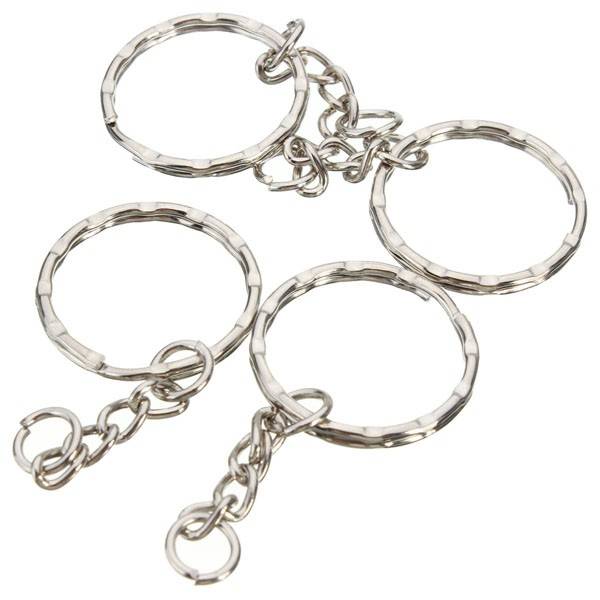 50Pcs 55mm Keyring Blanks Silver Tone Keychain Key Fob Split Rings 4 Link Chain