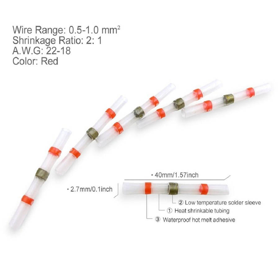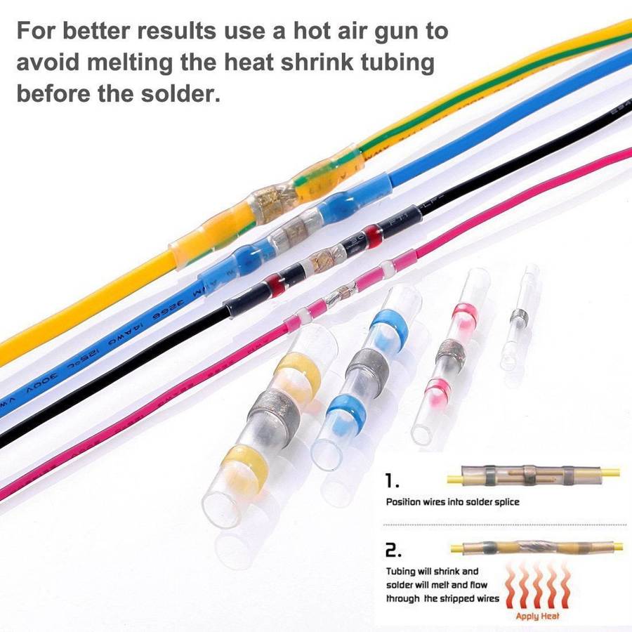 Features Solder and seal and with advanced waterproof function. Polyolefin tubing in outside and hot melt adhesive in inside. Can be ideal used in marine and automobile applications. Comply with all relevant European standards. Shrinking ratio: 2:1. Improve pullout strength, provides seal, strain relief, cable check, and insulation. More Effective Way - An easy one step connection of wires, insulated and sealed. Easy Operation - Transparent sleeve provides precise inspection when strip and insert wires inside. No Slip Wire Contact - Tubing reduces in size and solder will melt and flow through the stripped wires, ensure strong holding, wire will not slip out of the connector.