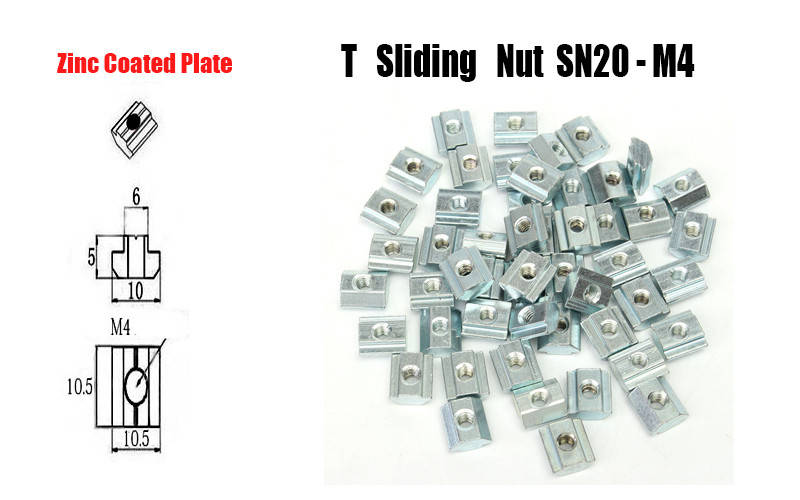 50pcs M4 T Sliding Nut Block for 2020 Aluminum Profile Zinc Coated Plate Aluminum Accessories