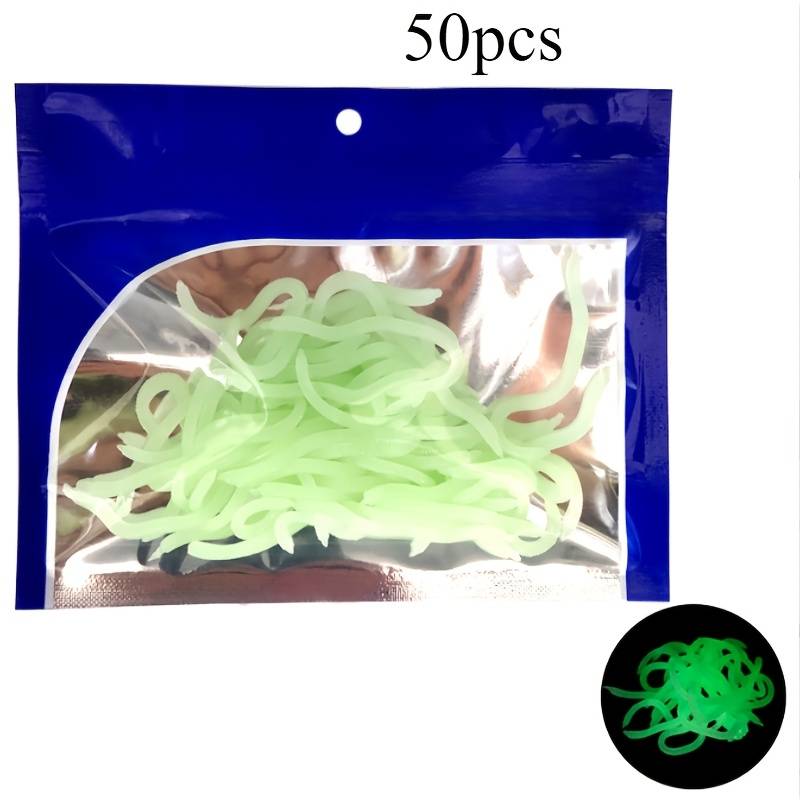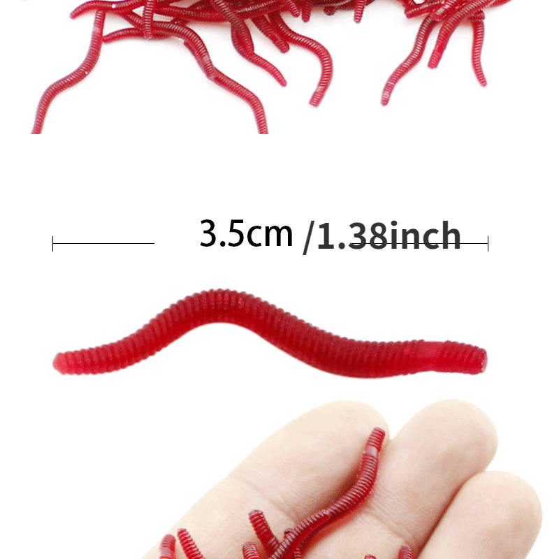 50pcs Simulation Soft Worm Lures Fake Red Earthworms Glowing Packaged Fishing Bait Color sent randomly Lead Contained:No Major Material:Silicone Color:Red Number Of Products:Please Refer To The SKU. Item ID:UQ435896