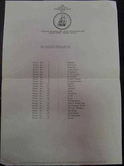 A perfectly preserved 50th Anniversary Wildlife Medallion set consisting of 24 medallions each one weighing approximately 37grams and struck in 24ct Gold Plated Sterling Silver and totalling approximately 888 grams in sterling silver.