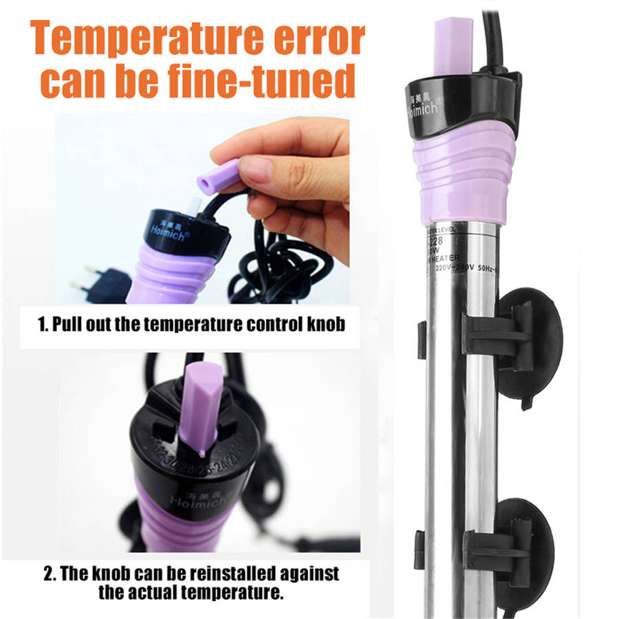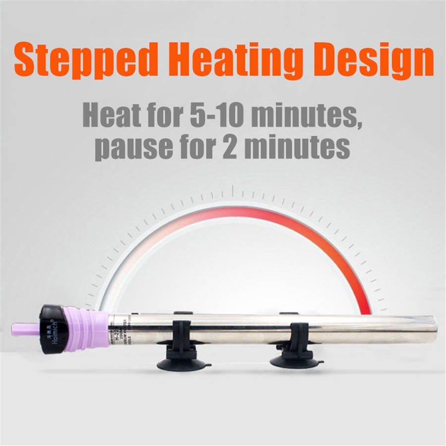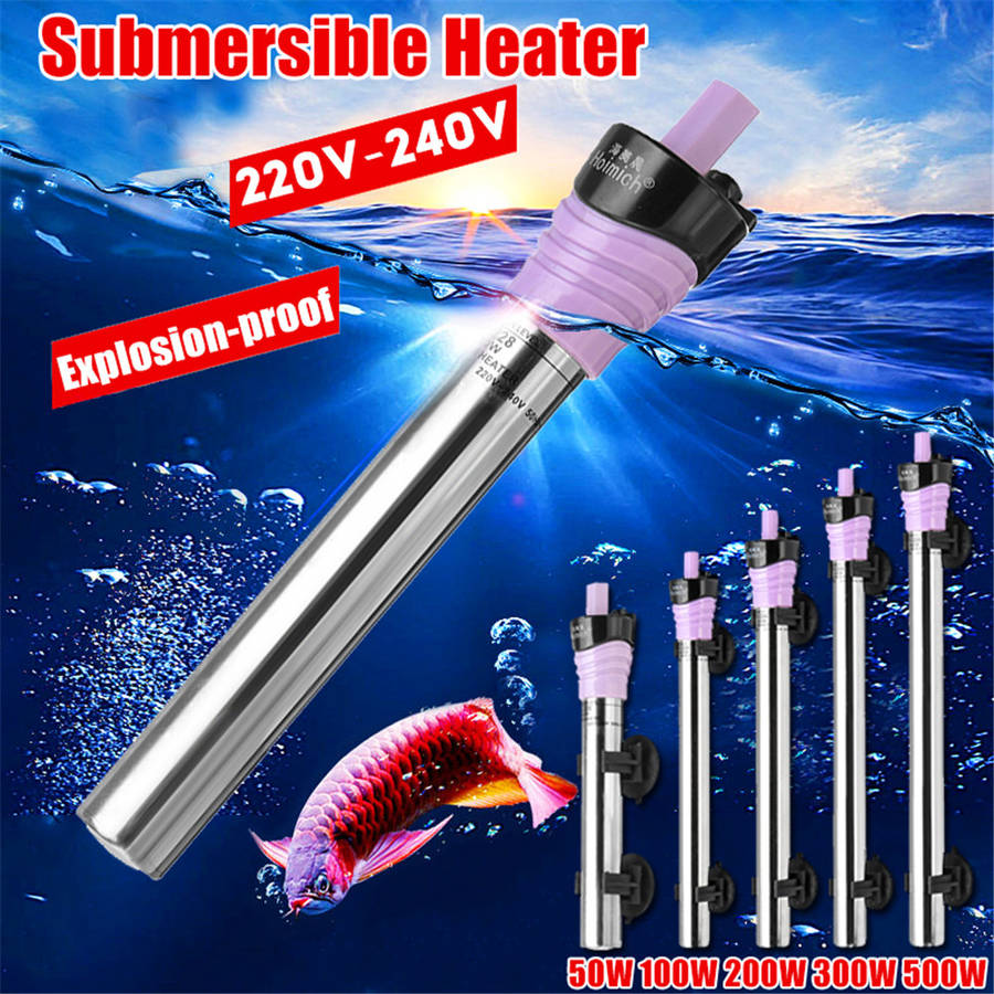 50W-500W Stainless steel aquarium submersible water heater heating rod fits for fish tank temperature.