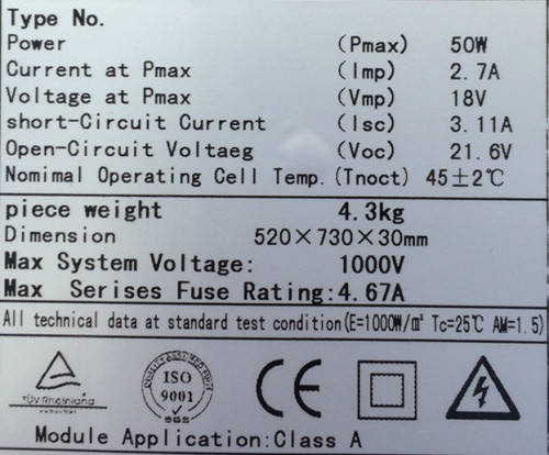 50W Solar Panel(Monocrystalline)