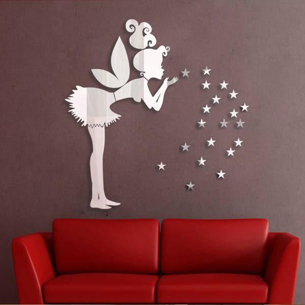 52cm Fairy Wall Stickers Stars Girl Mirror Wall Decal Art Home Decoration