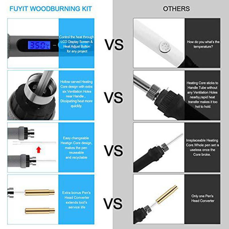 - Artistics creation: The perfect wooden kit burns not only allows you to create on any type of wood or leather, but also for a variety of designs such as image transfer, die cutting, welding, hot pressing and textile embossing.