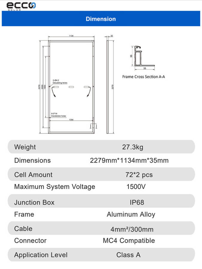 Very Efficient and powerful 550W mono-crystalline panel. Durable anodized aluminum alloy.