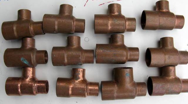 57 VARIOUS PLUMBING FITTINGS (COPPER) TEES, ELBOWS, ETC