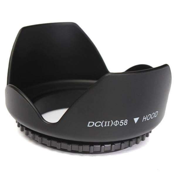 58mm Camera Lens Hood: The addition of a lens hood can help prevent flares-those circles of light that can accompany images where a strong light source is just outside the frame Professional tulip shape design (also known as "flower" or "petal" shape) allows for greater versatility. Perfect for standard or zoom lenses Easy to use screw mount lens hood screws right onto your lens or filter Lens hoods also have the added benefit of providing extra protection to your lens from accidental bumps or scratches