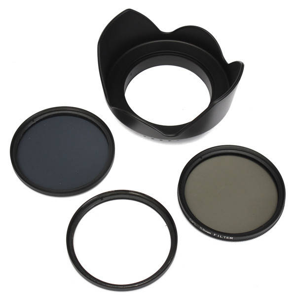 58mm UV CPL ND4 Circular Polarizing Filter Kit Set With Lens Hood For Canon Camera