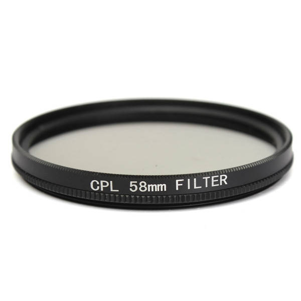 58mm 3 Pieces Filter Kit UV, CPL, ND4: UV Filters reduce haze and improve contrast by minimizing the amount of ultraviolet (UV) light entering the lens. Especially effective at high altitudes and snowy regions CPL Filters (Circular Polarizer) are great for removing unwanted reflections from non-metallic surfaces, such as glass or water. Mounted on a rotating frame, this filter can be adjusted to block different levels of reflection ND (Neutral Density) Filters reduce the amount of light entering the film without affecting the color. Perfect for higher-quality, long exposure pictures