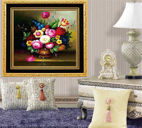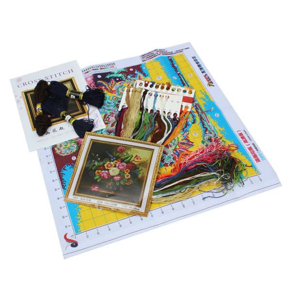 DIY Flower Vase Oil Painting Cross Stitch Kit Embroidery SetFlower vase pattern, oil painting cross stitch. It can decorate your home well