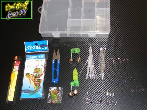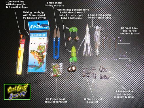 59 Piece fishing tackle set as described on the above photo with a handy compartment holder. Ideal for a beginner or just to stock up on certain / new items for the fishing trip.