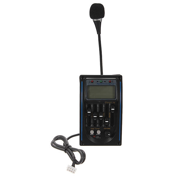 With this preamp, you spend less time tweaking controls and more time playing. Tone and volume control. With volume, bass, middle, treble, pres control knobs. LCD display, easy to read. Powered by 6F22 9V battery Low battery check LED. Auto and manual tuning mode.