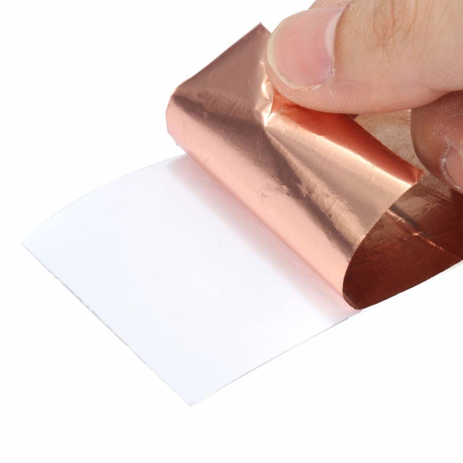 1.EMI shielding for electronic components. 2.Shielding for the back of guitar pickguards and cavities. 3.Eliminate Electrical noise and humming. 4.Copper trace repair on printed circuit boards. 5.Protect plants by taping around pots and planters as slug and snail barrier control. 6.Mainly used to eliminate electromagnetic interference EMI, to prevent body harm from electromagnetic wave. For manufacture of computer peripheral, monitor, or transformer and so on.