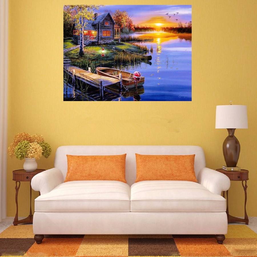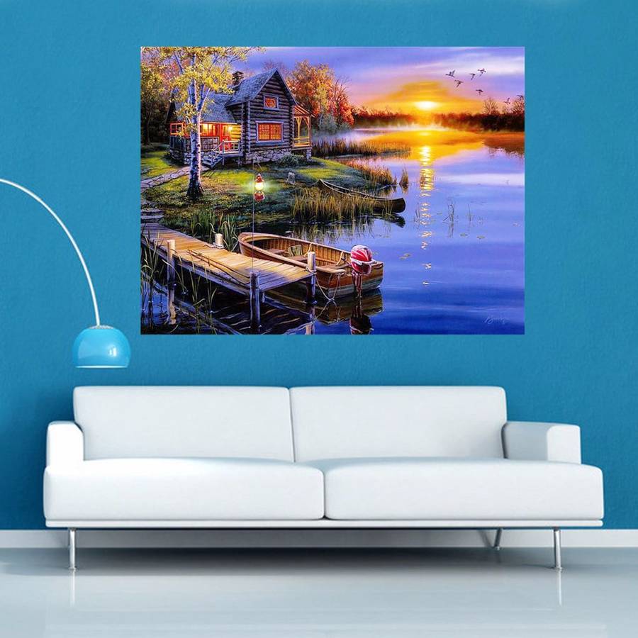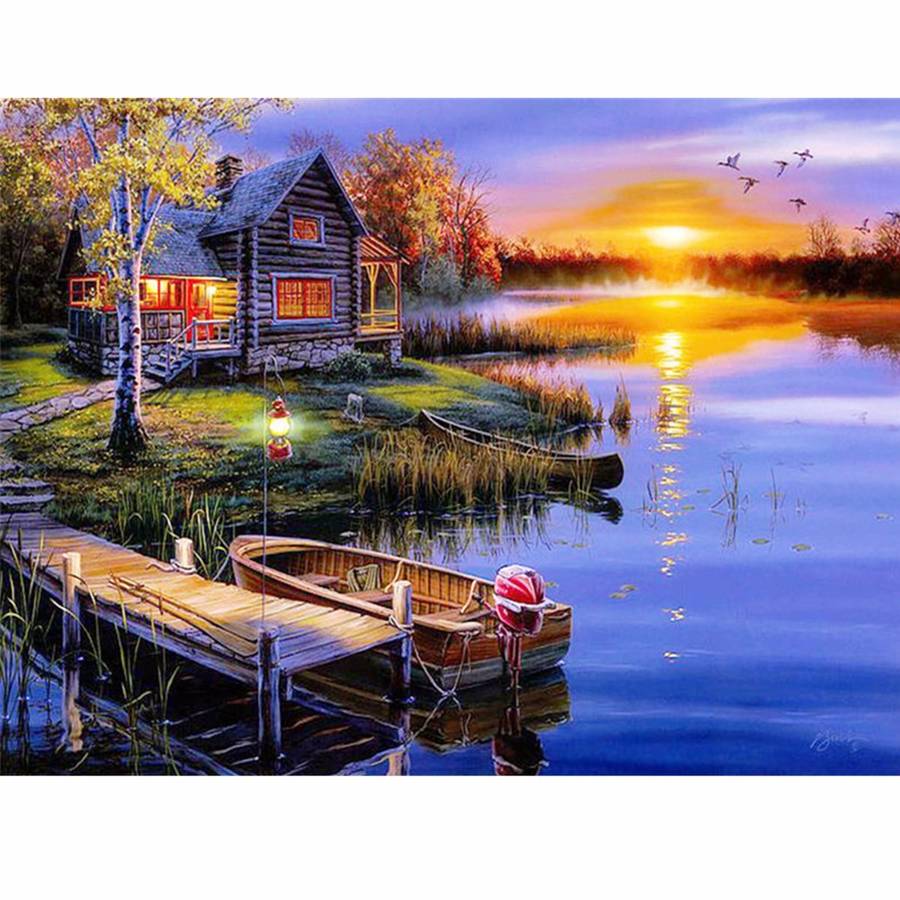 5D Diamond Painting DIY Lake&House Landscape Cross Stitch Home Decor