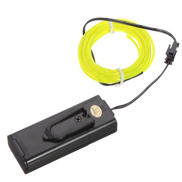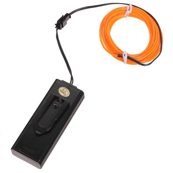 Package weight: 0.04 kg Specifications: EL wire is a thin copper wire coated in a phosphor which glows a 360 degree unbroken light when an alternating current is applied to it. It is bendable as a thin neon tube which makes it ideal for flexible decoration. It is great for car decoration, parties, camping, bar decoration and so on. Light your life and have fun! Features: - Flexible and water resistant, can be bent into any shape and cut into any length - Can offer 360 degrees of illumination - Energy saving, long life time - Life time: ≥12,000 hours - 3 light modes: steady on, slow flashing, quick flashing - Wire diameter: 2.3mm - Wire length: 5M - Working temperature: - 40°C to 80°C - Powered by: 2 x AA batteries (not included) - 10 Colors: Red, Orange, Yellow, Green, Blue, Purple, Pink, White, Fluorescent green,Light green. Package included: 1 x EL wire 1 x Battery pack (Batteries not included)