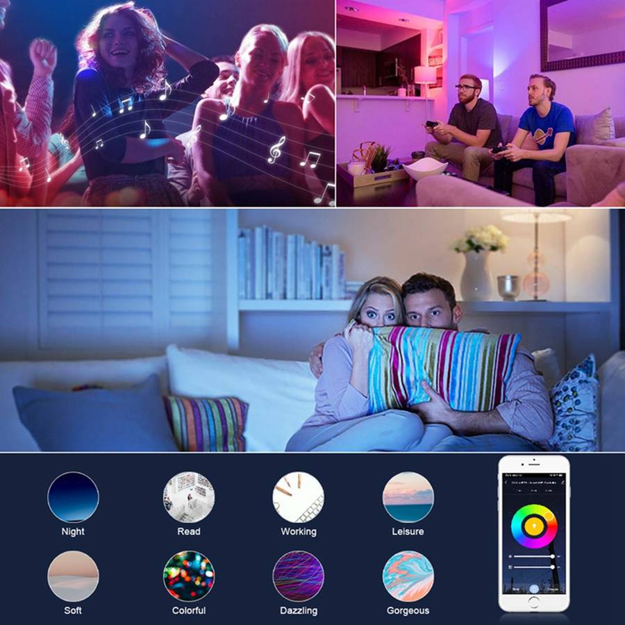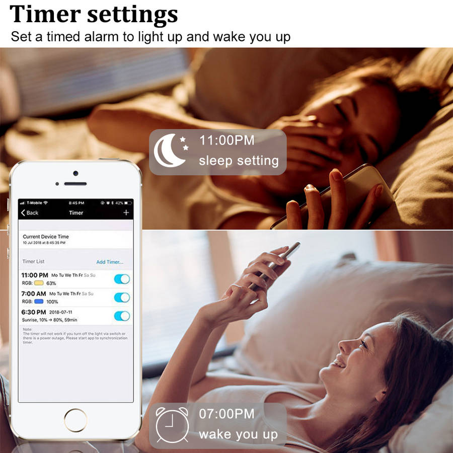 Features: Work with Amazon Alexa, Google Assistant, HomeKit. Compatible with a variety of smart speakers, such as Xiaoai, Tmall Genie, Xiaodu, etc. Timer setting, delay function Smartphone APP control, no need gateway, one pair of multiple bulbs Group control 16 Million colors adjustable and dimming 24keys RGB IR remote control