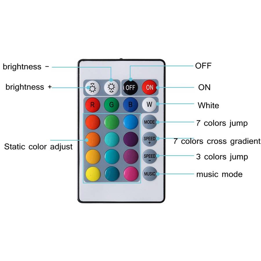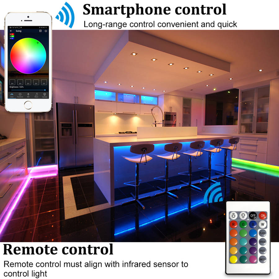 Package included: 1*5M LED Strip Light 1*24keys IR remote control 1*bluetooth LED controller 1*EU or US plug