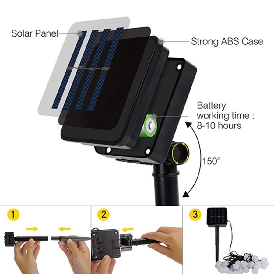 Place these solar string lights around the garden or trees to decorate your outdoor space. Item is waterproof to suit for using outdoor and indoor.