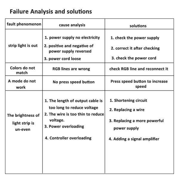 8 Light Pattern: Quick / Slow / Auto / Flash / 7 color fade change / 3 color fade change / 7 color jumpy change / 3 color jumpy change R / G / B increase and decrease control