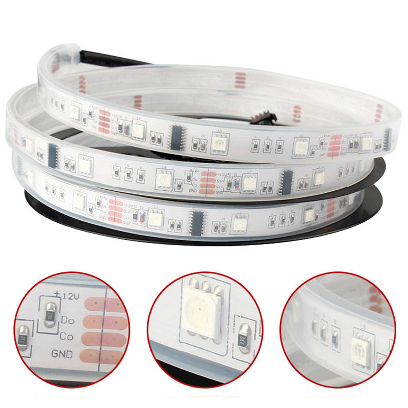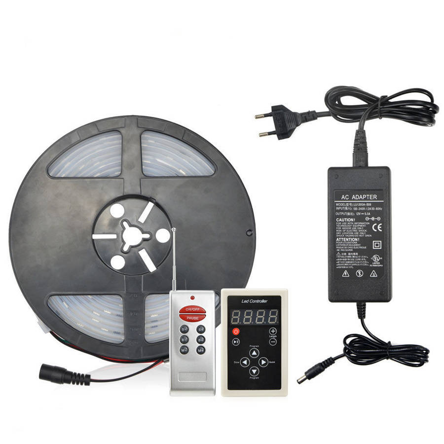 Feature: Supply voltage of this product is DC12V no need to connect other high voltage. No need to connect two wires directly in case of short circuit. Lead wire should be connected correctly according to colors that connecting diagram. Waterproof 5050 SMD dream color LED strip light With digital tube, left two reveal the mode, right two reveal the speed Great for holiday, disco, party, home, garden and shops decoration etc. Package Included: 1*5M SMD5050 LED strip light 1*RF controller 1*12V 5A adapter