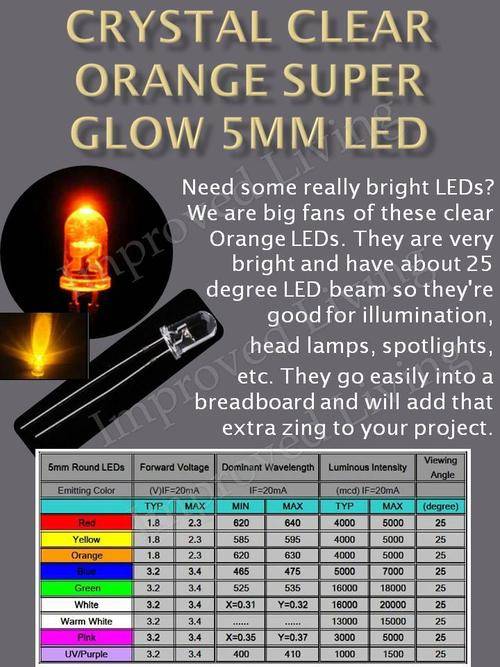 5mm 5000 MCD BRIGHT NEON ORANGE Crystal Clear LED Light Lamp  ****WITH  FREE RESISTOR