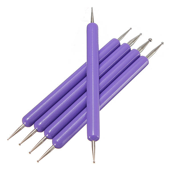 Set Of 5pcs Nail Art Dotting Tools With 2 Ends, One With Larger Ball Dot And Another With Smaller Ball Dot For Carious Marbleizing And Dotting Work.
