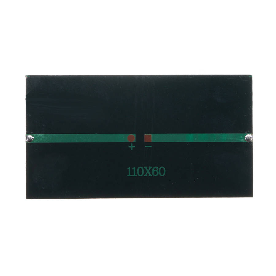 Specifications: - Model:60*110mm -Type:Epoxy Solar Panel -Maximum power: 1W -Working current:0-160MA -Working voltage:6V -Open circuit voltage:7.2V -Short circuit current:0.2A -Number of batteries:12pcs -Dimensions:110*60mm -Polycrystalline: Yes -Reference weight: about0.020KG Package included: 5 x Solar Panel