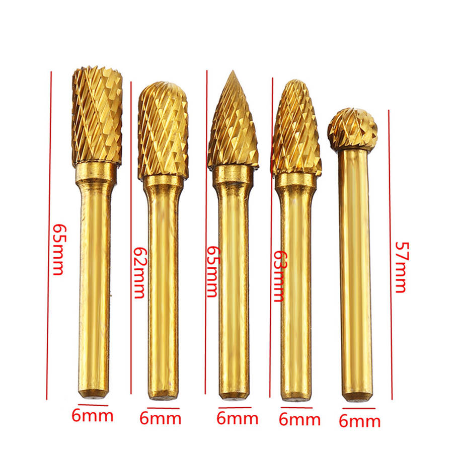 5pcs 6x10mm Tungsten Steel Grinding Head Drill Bit Titanium Coated Rotary Burrs Tool