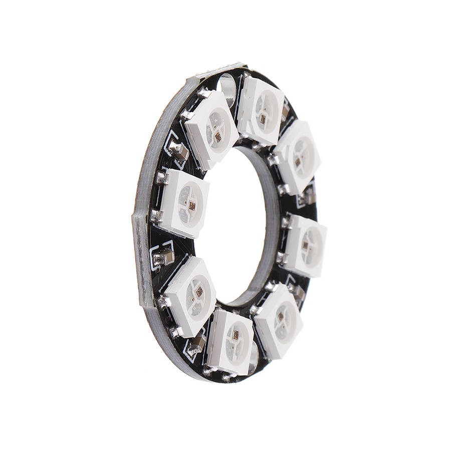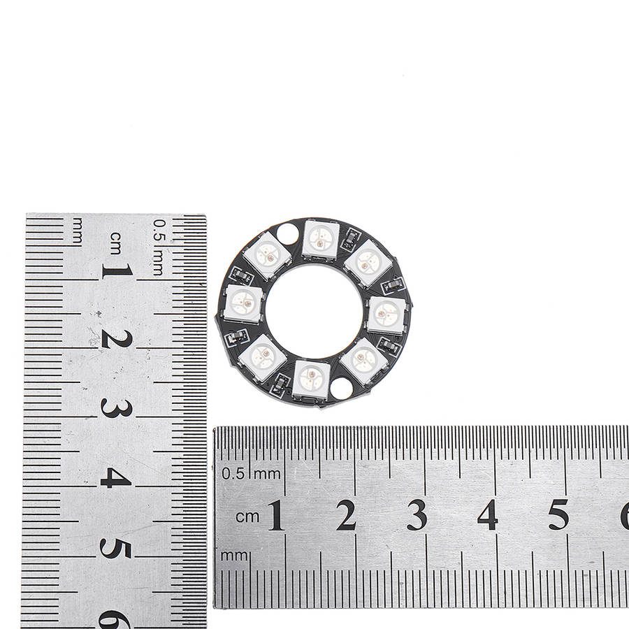 Feature: Votalge: DC 5V Color: RGB An Outer radius of 2 x 28mm, an inner radius of 2 x 8mm Package included: 5 x 8 Bit WS2812 5050 RGB LED Driver Development Board