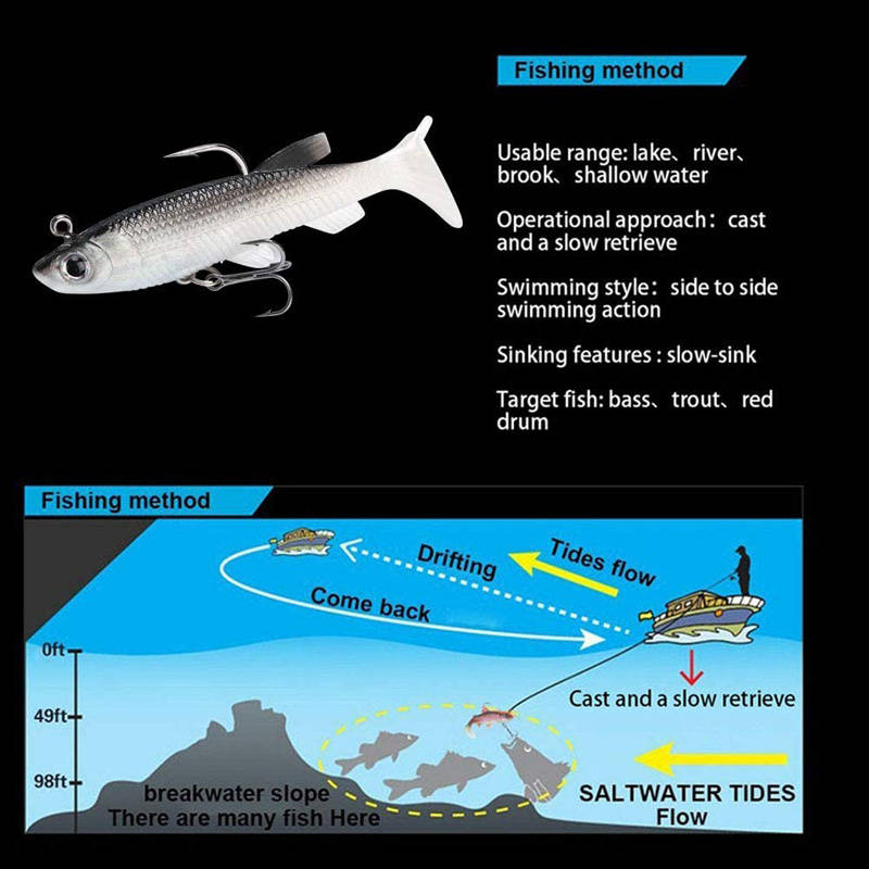 Versatile: Suitable for various types of fish such as bass, trout, and salmon Realistic Design: Mimics the movement and appearance of real bait to attract fish Durable Material: Made of high-quality soft plastic material that can withstand multiple bites Easy to Use: Can be used by both beginners and experienced fishermen