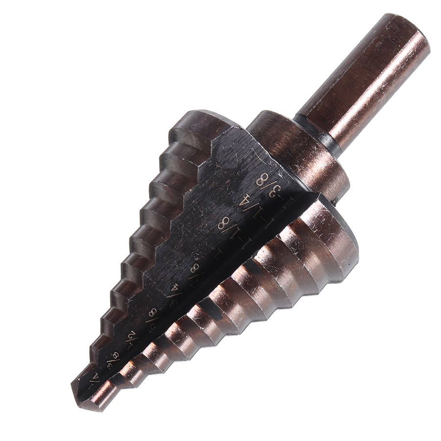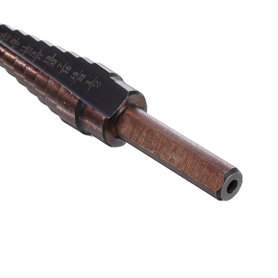 Description: Hex Shank HSS Titanium Coated Step Metal Dremel Drill Woodworking Tool Bit 4-40mm Specification: