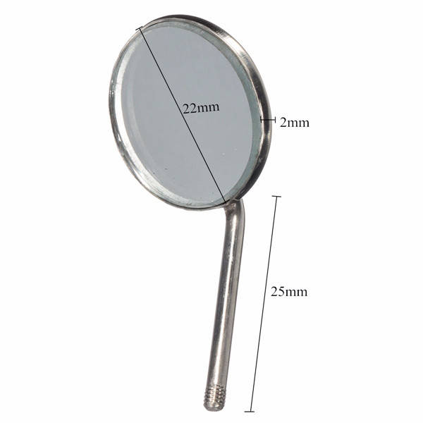 Description: Material: Stainless Steel Plain Diameter: App 22mm Thickness: App 2mm Tube Length: App 25mm Color: Silver Package Included: 5 X Dental Mirror Notes: 1. The real color of the item may be slightly different from the pictures shown on website caused by many factors such as brightness of your monitor and light brightness. 2. Please allow slight deviation for the measurement data.