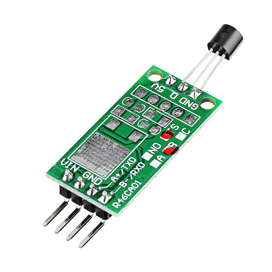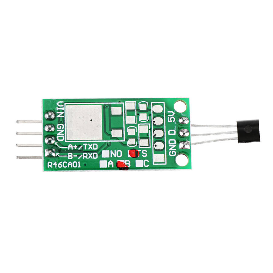 Description : - MODBUS RTU protocol,03 Read,06Write. - Serial baud rate:9600,N,8,1 - By modifying the RS485 address, up to 247 module s can be connected (more than 16 US ether485 repeater) - Working Voltage : 12V DC - Working Current: 5-7mA - Temperature sensor: DS18B20 - Measures Temperatures: -55ᆪC to +125ᆪC(-67ᆪF to +257ᆪF) - Accuracy: ±0.5ᆪC - Size: 30X15X3.5mm Typical Application: Thermostatic Controls Industrial Systems Consumer Products Thermometers Thermally Sensitive Systems Indoor and outdoor temperature measurement Temperature in vegetable garden Weather forecasting, and monitoring Temperature in Computer Room Warehouse temperature Package Included: 5 x DS18B20 12V RS485 Com UART Temperature Acquisition Sensor Module