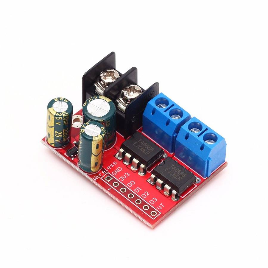 Description: 1. DC Motor Speed Controller,The full name of pulse width modulation is Pulse Width Modulator.Abbreviation PWM.DC motor governor is a device for adjusting the speed of a DC motor. 2. DC motor speed regulation, industrial conveyor belt speed regulation, lighting and lighting mediation, computer power supply cooling, DC fan, etc., have been widely used. Features: 1.High power; 2.Small size; 3.Low power consumption; 4.Simple operation; 5.Dual Driver; 6.Support independent control for 2 motors; 7.Support 433MHz remote control(Not include!). Specifications: Number:ZK-5AD Working Voltage:DC 3.0V-14V Input Signal Voltage:DC 2.2V-6.0V Drive Current:5A Stand-by Current:10uA Working Temperature:-20 to 85 Celsuis Working Humidity:0%-95%RH Size:38*27*18mm Mounting hole diameter:2mm Conventional control method: 1.Module can control 2 DC motors separately. 2.D0 and D1 control Motor 1; 3.D2 and D3 control Motor 2; 4.High level signal is DC 2.2V-6.0V; 5.Low level signal is DC 0.0V-0.7V; 6.D0~D3 can receive control signal from MCU and other signal source; 7.Control logic by Drive Logic Table shown as following in description picture. Remote Control Mode: 1.It can be control by 433MHz Wireless Remote Control Switch Module.User can connect output from 433MHz receiver to input interface at motor drive module.But 433MHz Wireless Remote Control Switch Module is not include in this package! User need to prepare in advance or purchase separately. 2.Its communication distance will just be about 20~30 meter if control motor.Due to interference from motor. 3.Inching Mode:Motor rotation when press button and stop rotation when release button.Two motoras work status are independent of each other. 4.Self-locking Mode:Motor rotation when press button and stop rotation when press button again.Two motoras work status are independent of each other. 5.Interlocking Mode:Motor 1 will stop when Motor 2 is working;Motor 2 will stop when Motor 1 is working;Two motoras work status are not independent. 6.When changing the direction of rotation of the motor, please be sure to wait for the motor to completely stop,otherwise the module will be damaged due to excessive current. 7.More information please refer to data sheet about 433MHz Wireless Remote Control Switch Module. Note: 1.When changing the direction of rotation of the motor, please be sure to wait for the motor to completely stop,otherwise the module will be damaged due to excessive current; 2.Please donat short circuit; 3.Reverse connection protection is not supported; 4.433MHz Wireless Remote Control Switch Module is not include in this package! User need to prepare in advance or purchase separately. Application: Wireless remote control car; Ship model; Model airplane; Wireless temperature and humidity detection; Intelligent data collection; Motor drive. Package Included: 5 x ZK-5AD 5A Dual Motor Drive Module