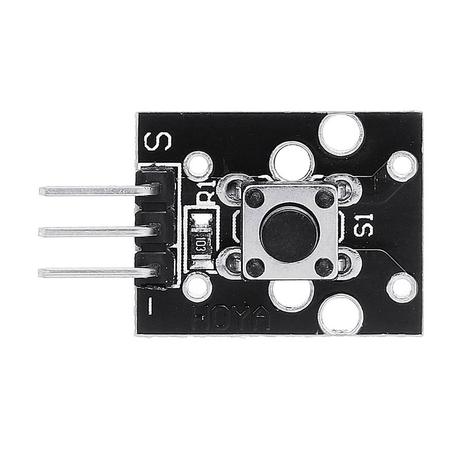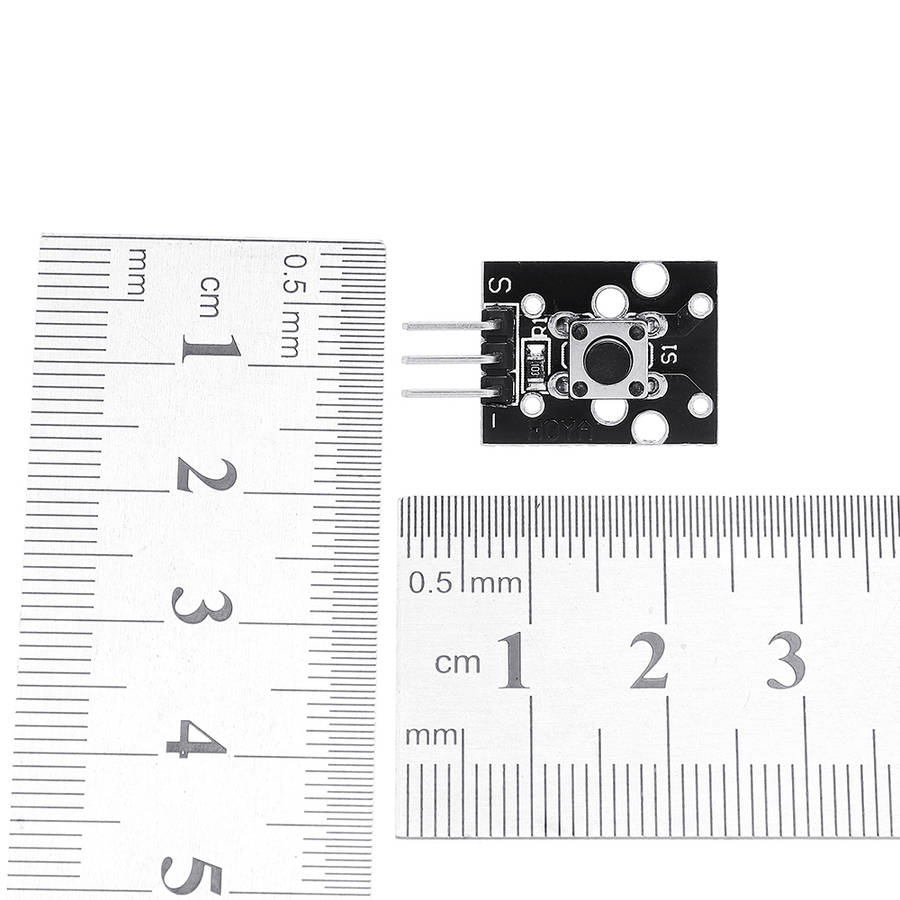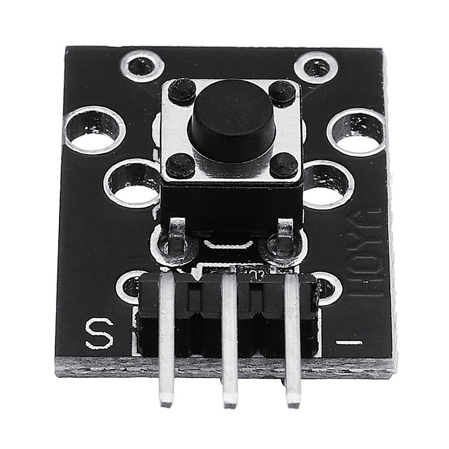 Specifications: 1. Rating: 50mA 12VDC. 2. Contact Resistance : 50m max. (initial) 3. Insulation Resistance: 100M.(minDC 250V) 4. Dielectric Strength : AC250V.(50/60Hz for 1minute) 5. Electrically Life: 100,000cycles. 6. Environment Temperature: -25ᆪ to+105ᆪ. 7. Operating Force: 180/230.(±20gf) 8. Seal Temperature: 250ᆪ-280ᆪ. Key switch module and a digital interface, built-in 13 LED build a simple circuit to produce key warning lamp.13 comes with digital interfaces of the LED, theaccess number 3 button switch sensor interfaces, when the key switch sensor senses a key signal , LED lights , otherwise off. Package Included: 5 x For PIC AVR Key Switch Module KY-004 MEGA2560 Breadboard